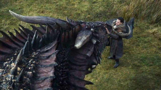 Não por acaso, e para grande surpresa de Dany, Jon teve grande empatia com Drogon (para os jogadores de D&D, ele rolou um teste de empatia com animais com um bônus racial de + 10, pelo menos), pois ele também é “do sangue do dragão”.