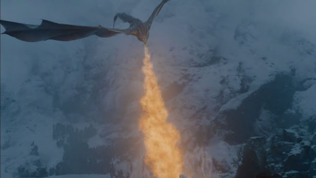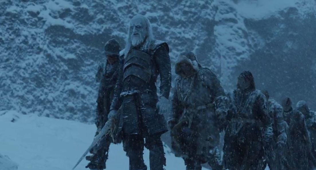 E finalmente, na última cena, os zumbis puxam Viserion morto para fora do lago, e o Rei da Noite o ressucita. A forma como isso acontece, com os olhos do dragão brilhando azuis, sugere que ele agora é mais um dragão-caminhante-branco do que um zumbi, o que, novamente, não faz muito sentido, já que a história havia estabelecido a premissa de que os caminhantes brancos eram criados a partir de criaturas vivas, no caso os bebês humanos.