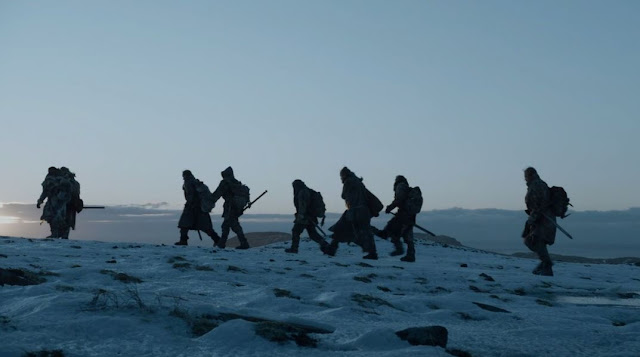 O episódio começa com A Sociedade Além da Muralha indo cada vez mais para o norte. Não fica claro o quanto eles avançam, mas parecem ser dezenas de quilômetros, e no meio tempo vários papos interessantes vão acontecendo entre os membros dessa comitiva.